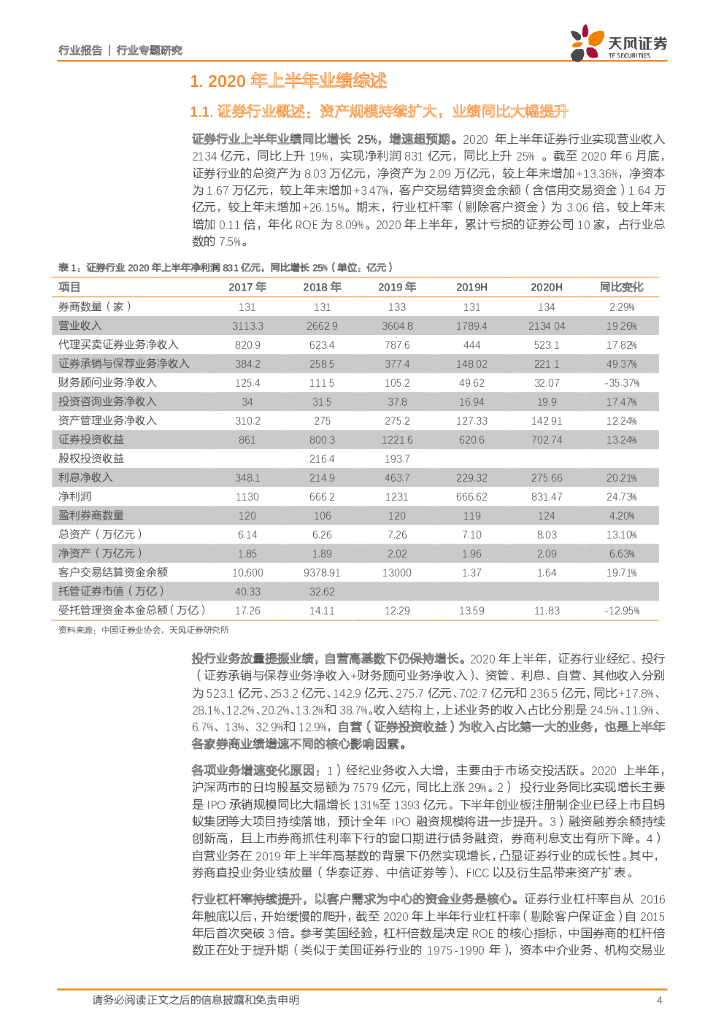 天风证券:上市券商2020年中报综述:传统业务全面增长,创新业务贡献弹性.pdf