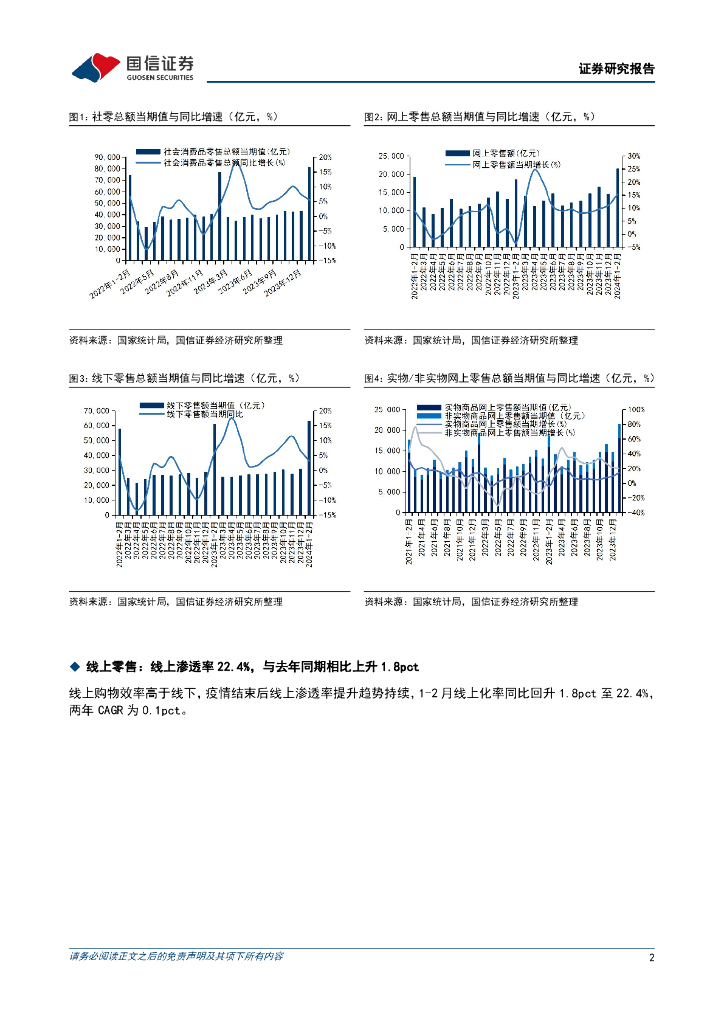 国信证券:2024年1-2月电商数据:社零大盘增速平稳,线上化率持续增长.pdf