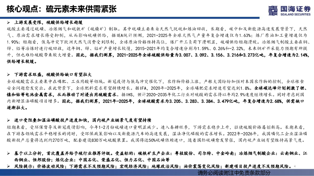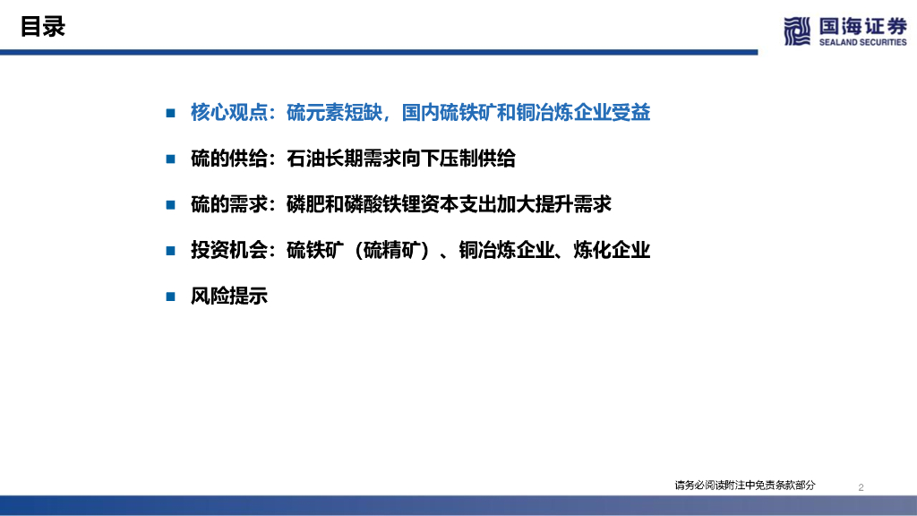 国海证券:硫行业深度报告:硫元素紧张,国内炼厂、硫铁矿和铜冶炼企业受益.pdf