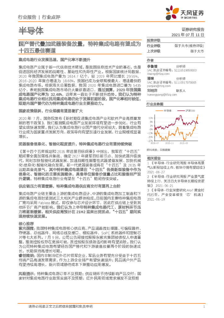 天风证券:半导体行业:国产替代叠加武器装备放量,特种集成电路有望成为十四五最佳赛道.pdf