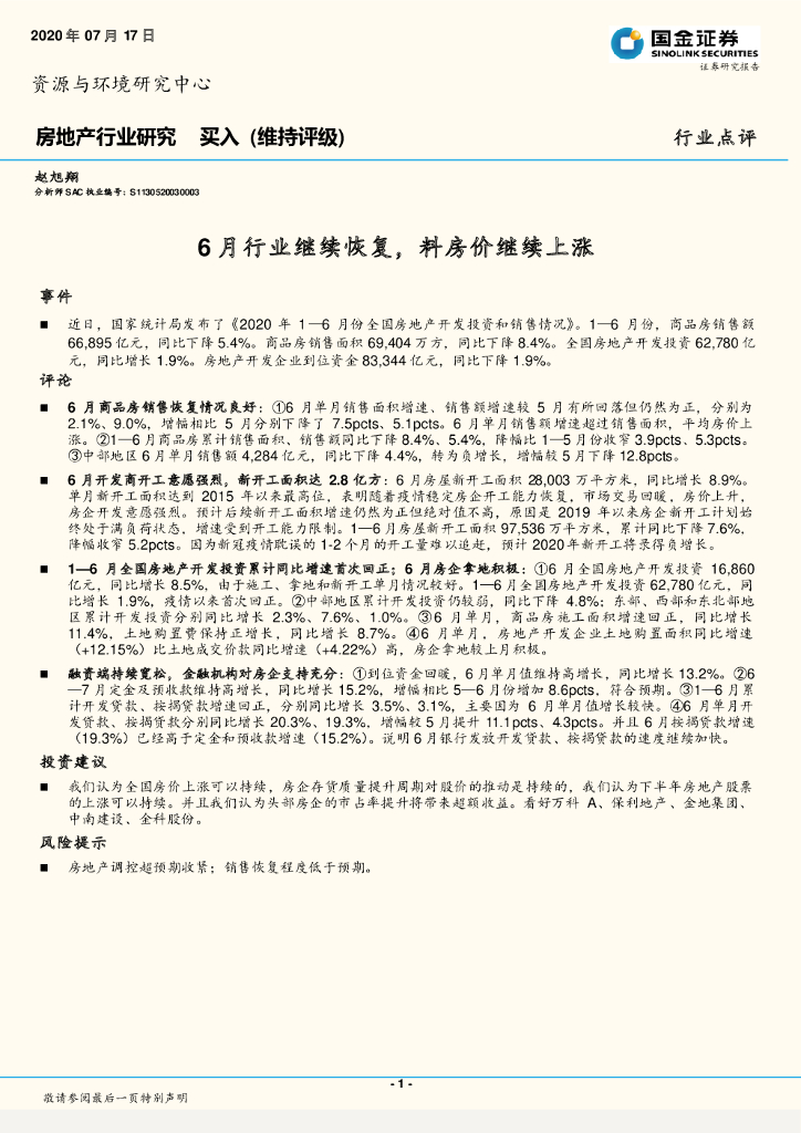 国金证券:房地产行业研究:6月行业继续恢复,料房价继续上涨.pdf