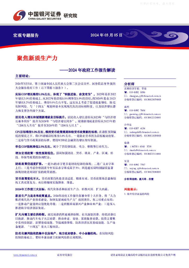 中国银河证券:2024年政府工作报告解读:聚焦新质生产力.pdf