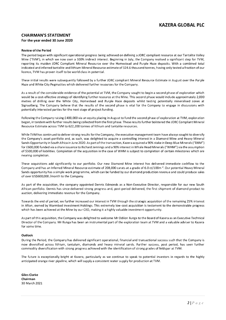 Kazera Global plc(KZG)2020财年年度报告(英文版).pdf