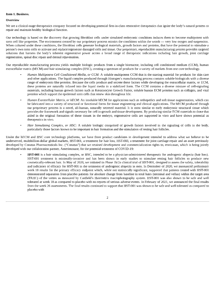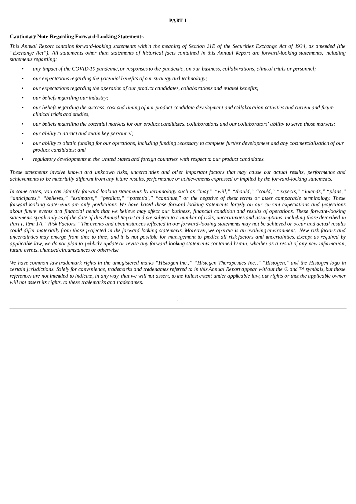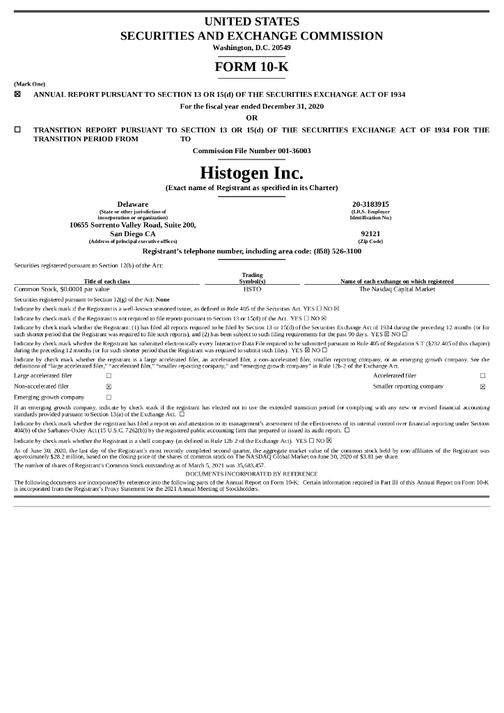 Histogen Inc.(HSTO)2020财年年度报告(英文版).pdf