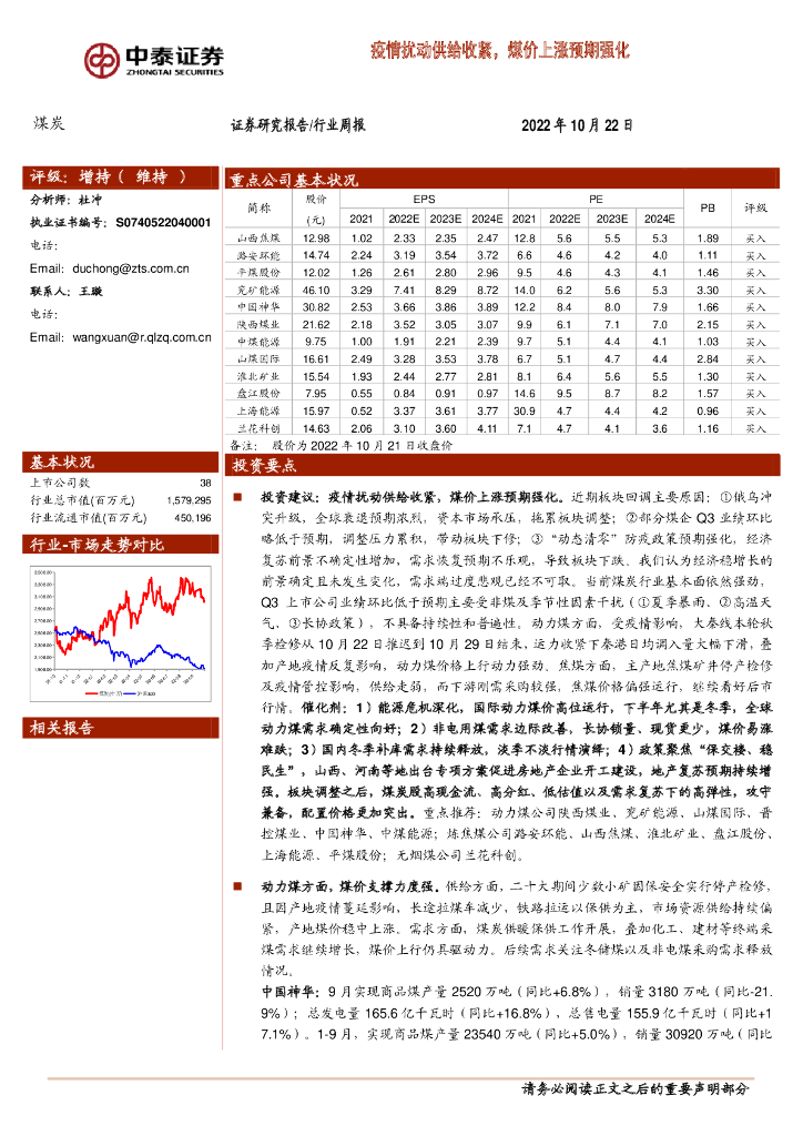 中泰证券:煤炭行业周报:疫情扰动供给收紧,煤价上涨预期强化.pdf