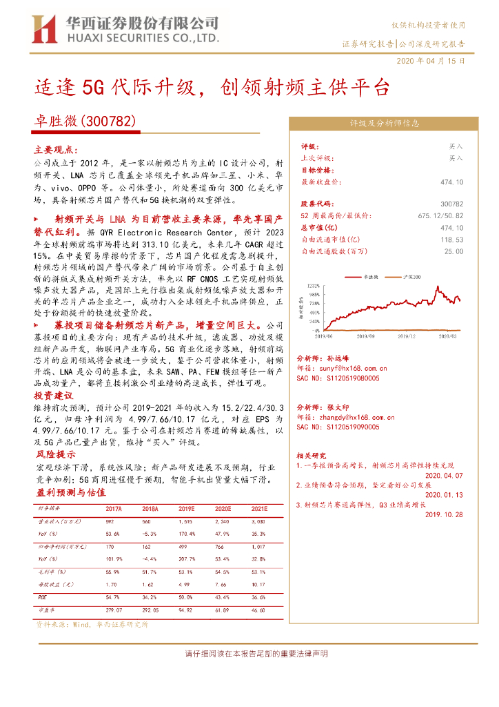 华西证券:卓胜微(300782)-适逢5G代际升级,创领射频主供平台.pdf