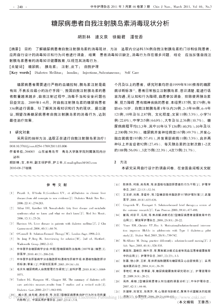 糖尿病患者自我注射胰岛素消毒现状分析.pdf