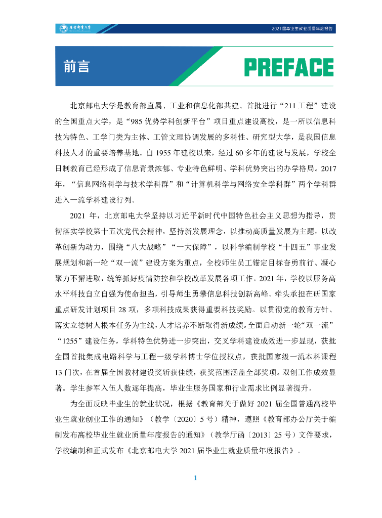 北京邮电大学2021届毕业生就业质量年度报告.pdf