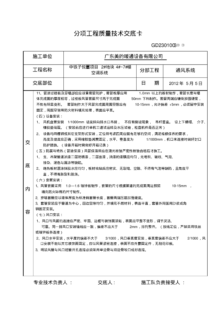 中铁子悦薹项目空调工程质量技术交底.pdf