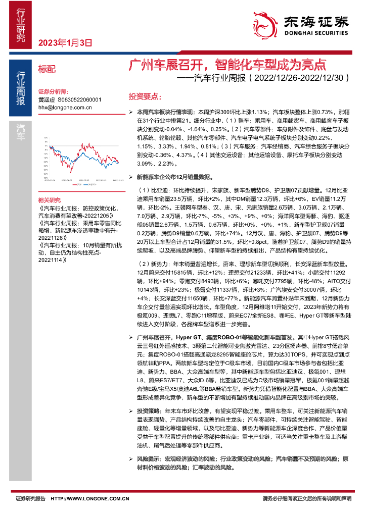 东海证券:汽车行业周报:广州车展召开,智能化车型成为亮点.pdf