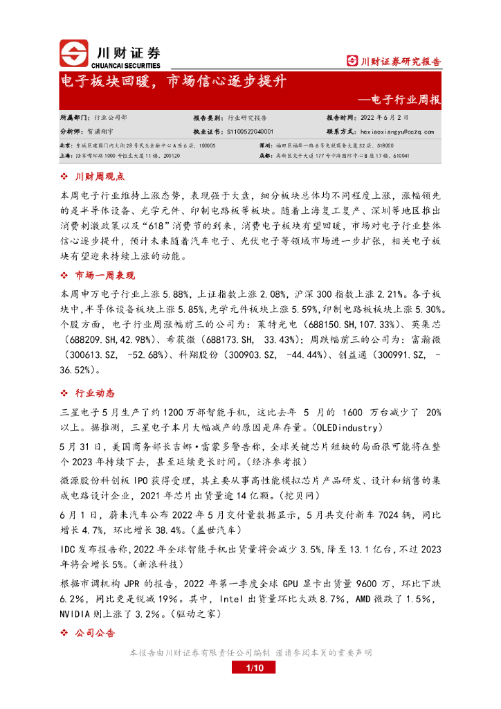 川财证券:电子行业周报:电子板块回暖,市场信心逐步提升.pdf