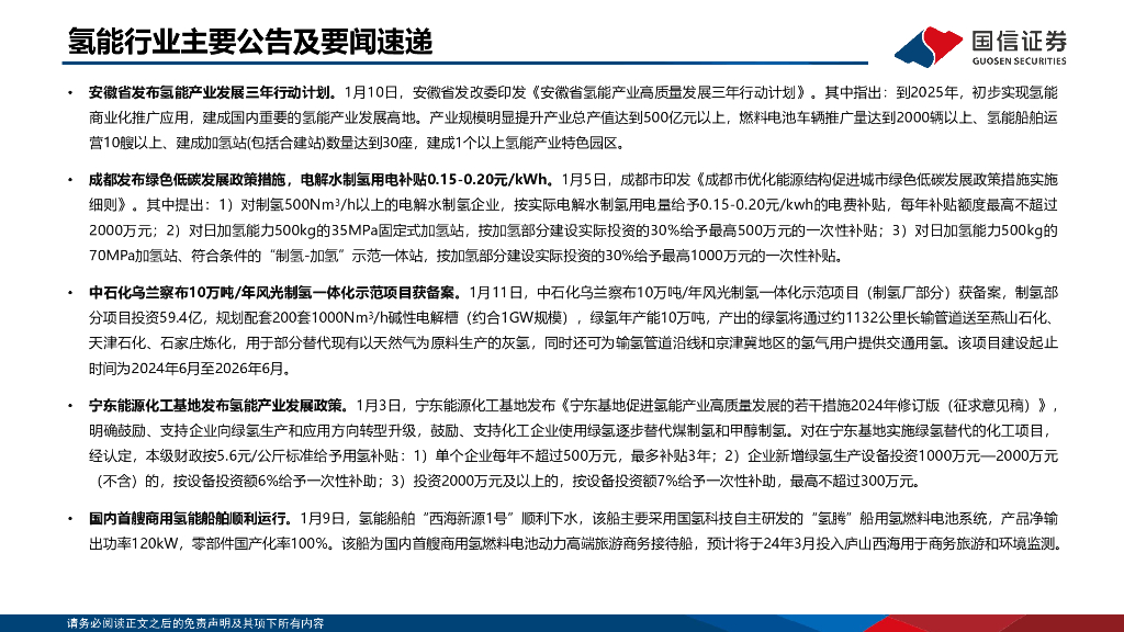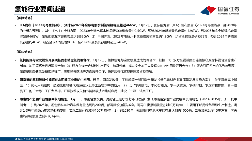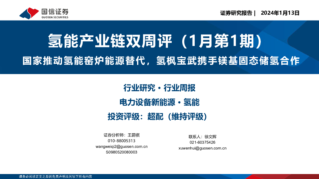 国信证券:氢能产业链双周评(1月第1期):国家推动氢能窑炉能源替代,氢枫宝武携手镁基固态储氢合作.pdf