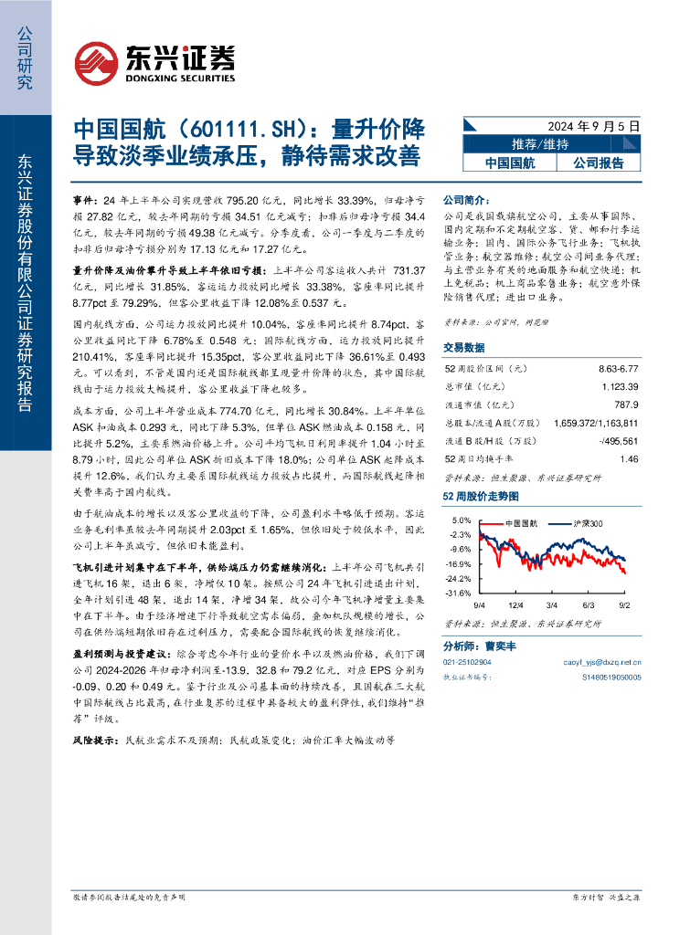 东兴证券:中国国航(601111)-量升价降导致淡季业绩承压,静待需求改善.pdf