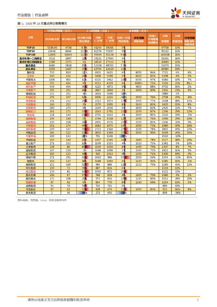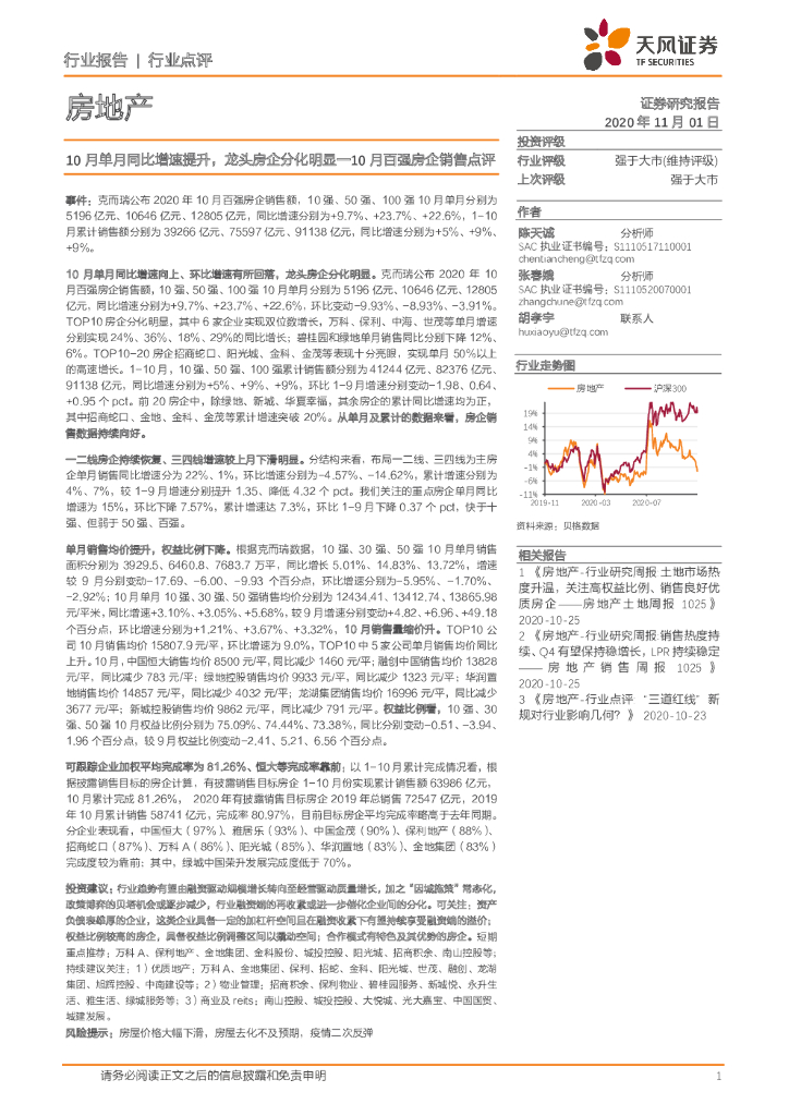 天风证券:房地产行业点评-10月百强房企销售点评:10月单月同比增速提升,龙头房企分化明显.pdf
