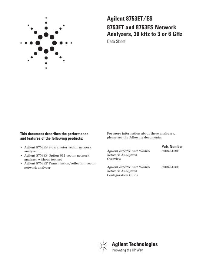Agilent 8753ET/ES 8753ET and 8753ES Network Analyzers, 30 kHz to 3 or 6 GHz Data Sheet.pdf