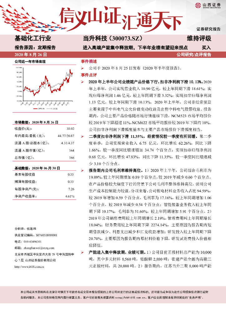 山西证券:当升科技(300073)-进入高端产能集中释放期,下半年业绩有望迎来拐点.pdf