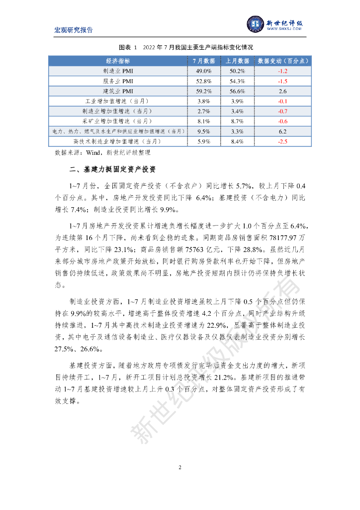 新世纪评级:内需不足拖累经济恢复 政策加力稳固发展基础——2022年7月宏观经济运行简析.pdf