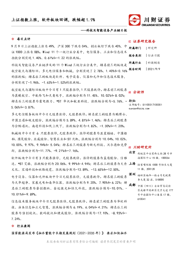 川财证券:科技及智能设备产业链日报:上证指数上涨,软件板块回调,跌幅超1.9%.pdf