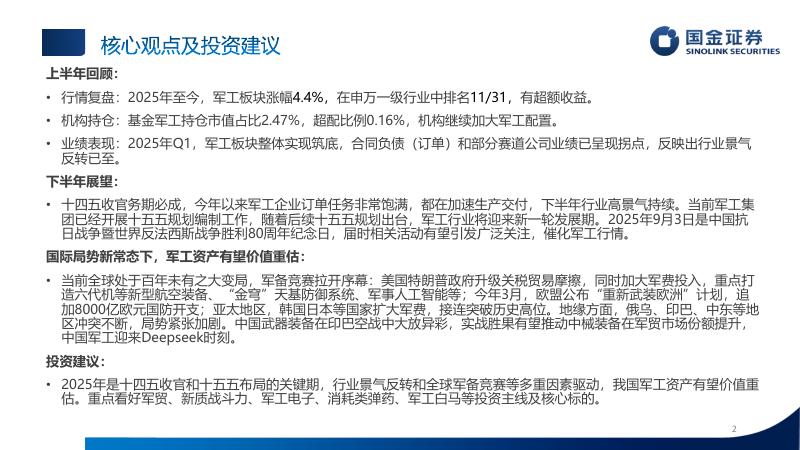 国金证券:军工行业2025年度中期策略:内销外贸景气双升,军工资产价值重估.pdf