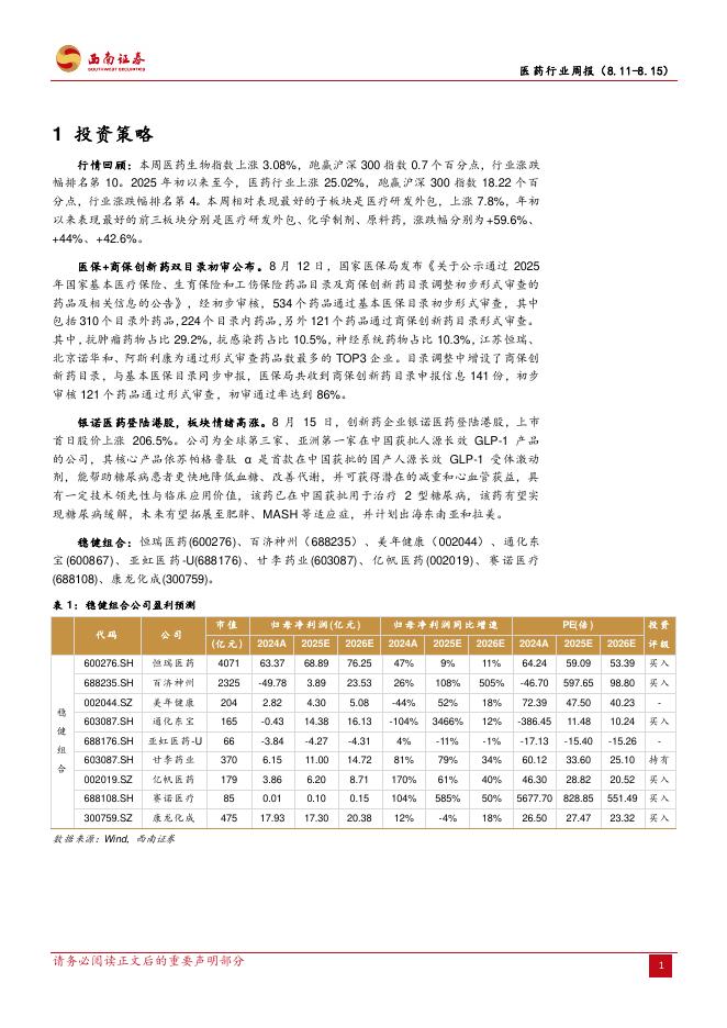 西南证券:医药行业周报:双保创新药目录初审公布,创新药板块情绪高涨.pdf