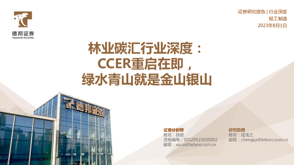 德邦证券:林业碳汇行业深度:CCER重启在即,绿水青山就是金山银山.pdf
