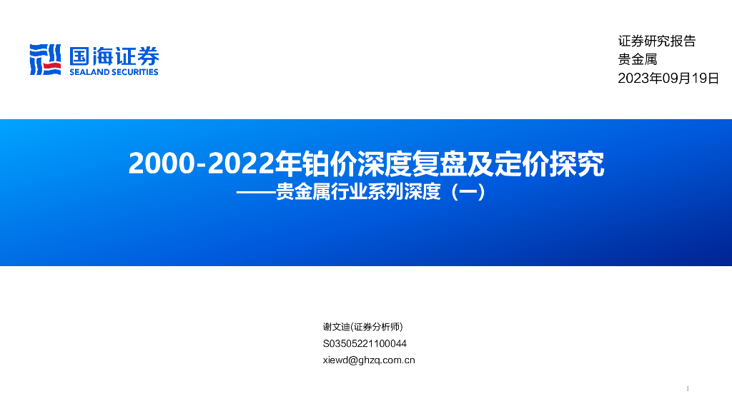 国海证券:贵金属行业系列深度(一):2000-2022年铂价深度复盘及定价探究.pdf