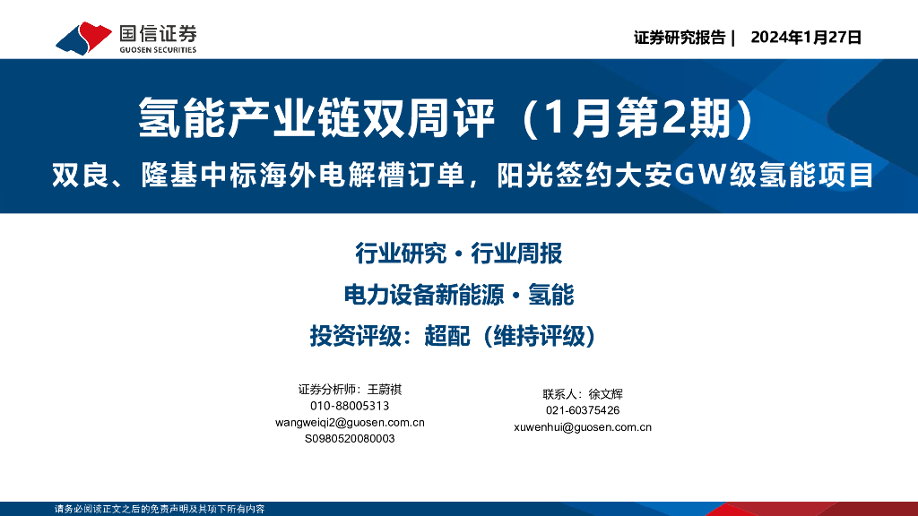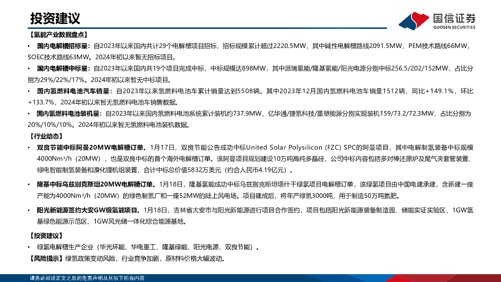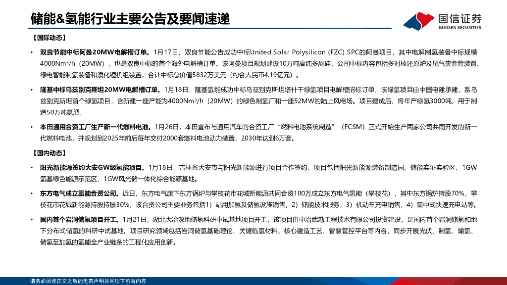 国信证券:氢能产业链双周评(1月第2期):双良、隆基中标海外电解槽订单,阳光签约大安GW级氢能项目.pdf