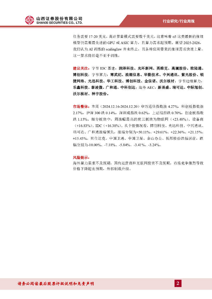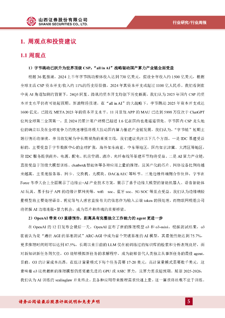 山西证券:通信周跟踪:字节跳动大幅催化算力产业链,O3推理表现震撼.pdf