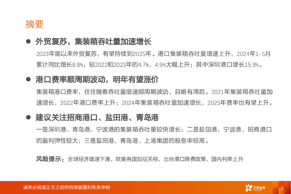 天风证券:航运港口行业专题研究:港口:集装箱吞吐量加速增长,费率有望回升.pdf