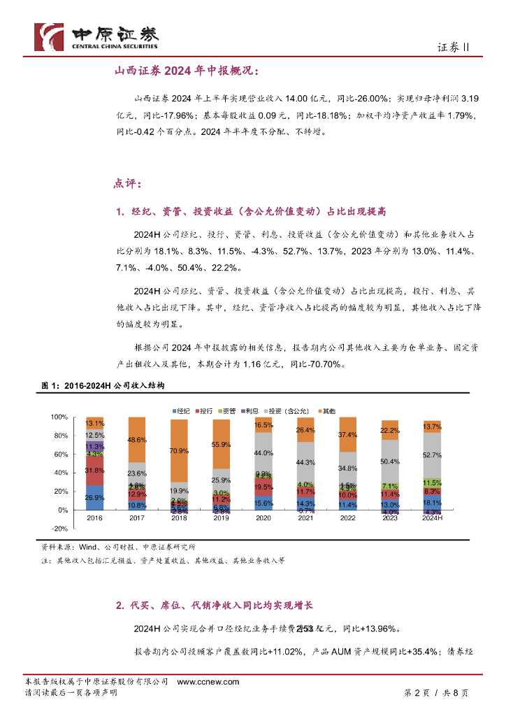 中原证券:山西证券(002500)-2024年中报点评:经纪业务逆市增长,资管业务快速发展.pdf