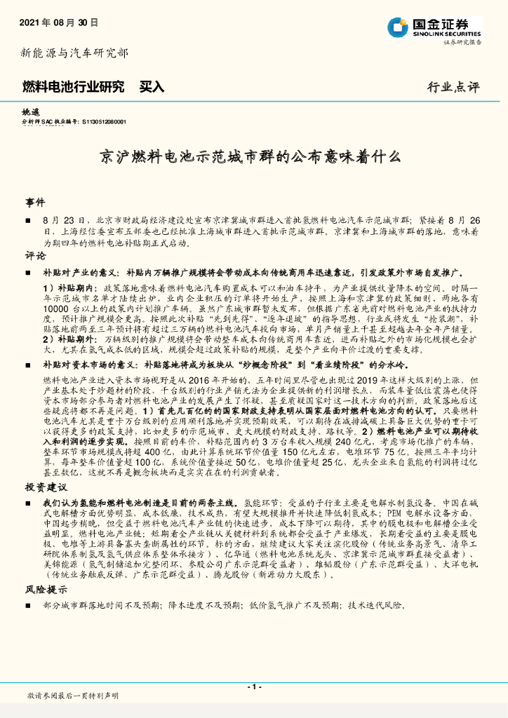 国金证券:燃料电池行业研究:京沪燃料电池示范城市群的公布意味着什么.pdf