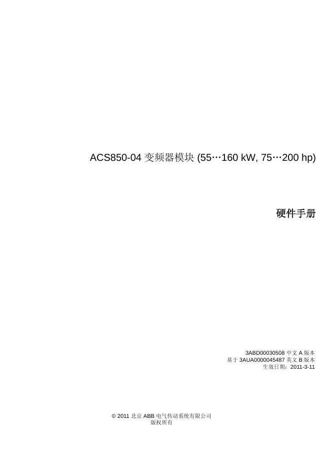 ABB ACS850-04 变频器模块 (55…160 kW, 75…200 hp) 硬件手册.pdf