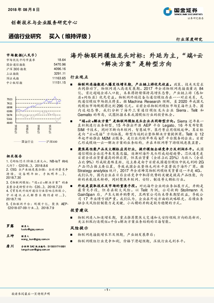 国金证券:通信行业研究:海外物联网模组龙头对标:外延为主,“端+云+解决方案”是转型方向.pdf