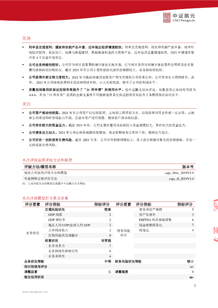 鹏元:2021年利辛县城乡发展建设投资集团有限公司公司债券2022年跟踪评级报告.pdf