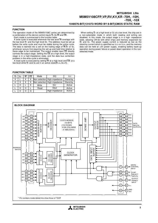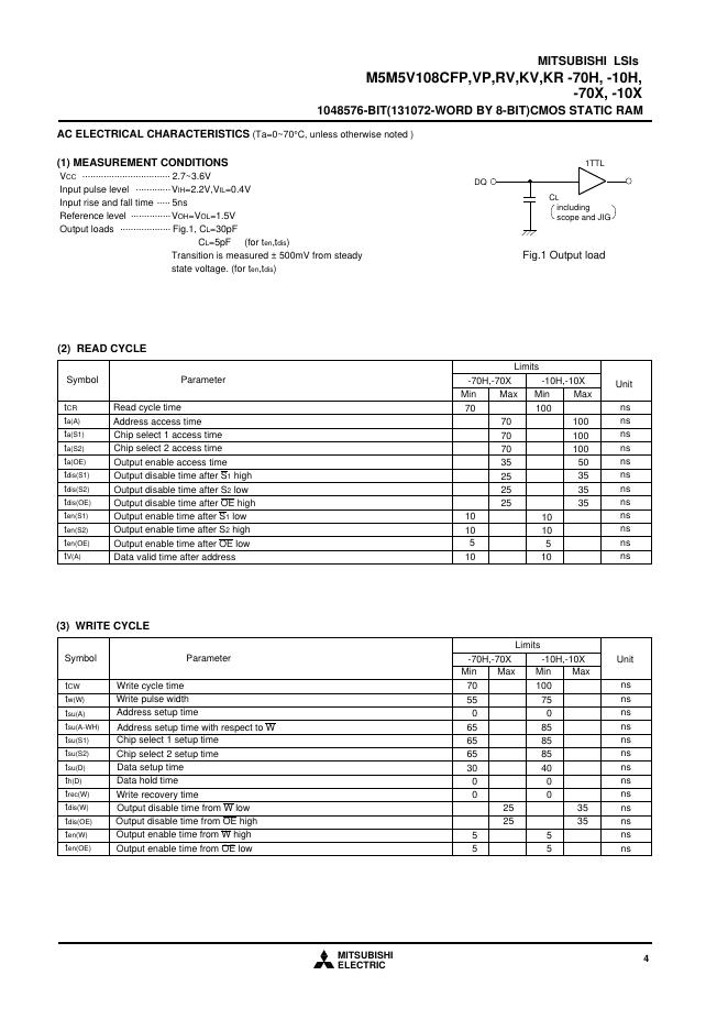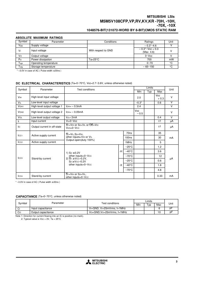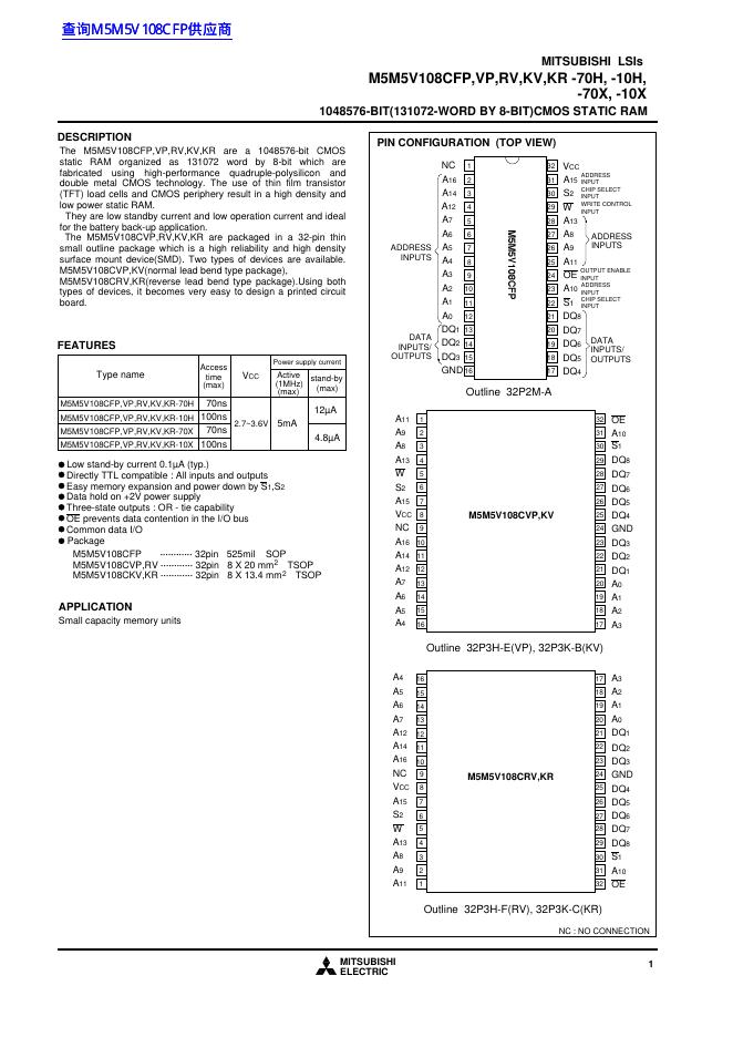 MITSUBISHI ELECTRIC M5M5V108CFP,VP,RV,KV,KR -70H, -10H, -70X, -10X 数据手册.pdf
