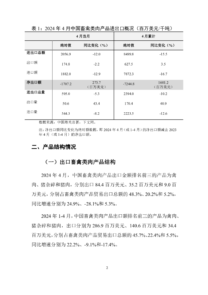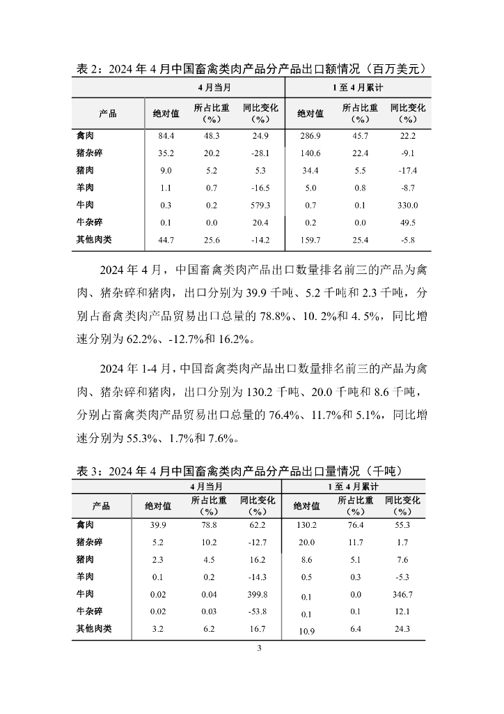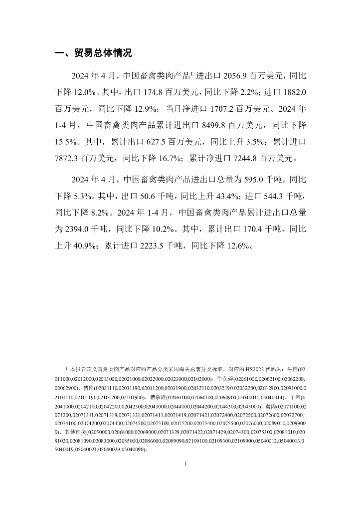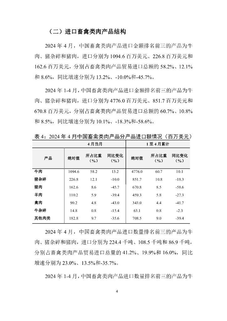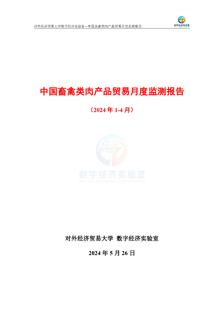 对外经济贸易大学:中国畜禽类肉产品贸易月度监测报告(2024年1-4月).pdf