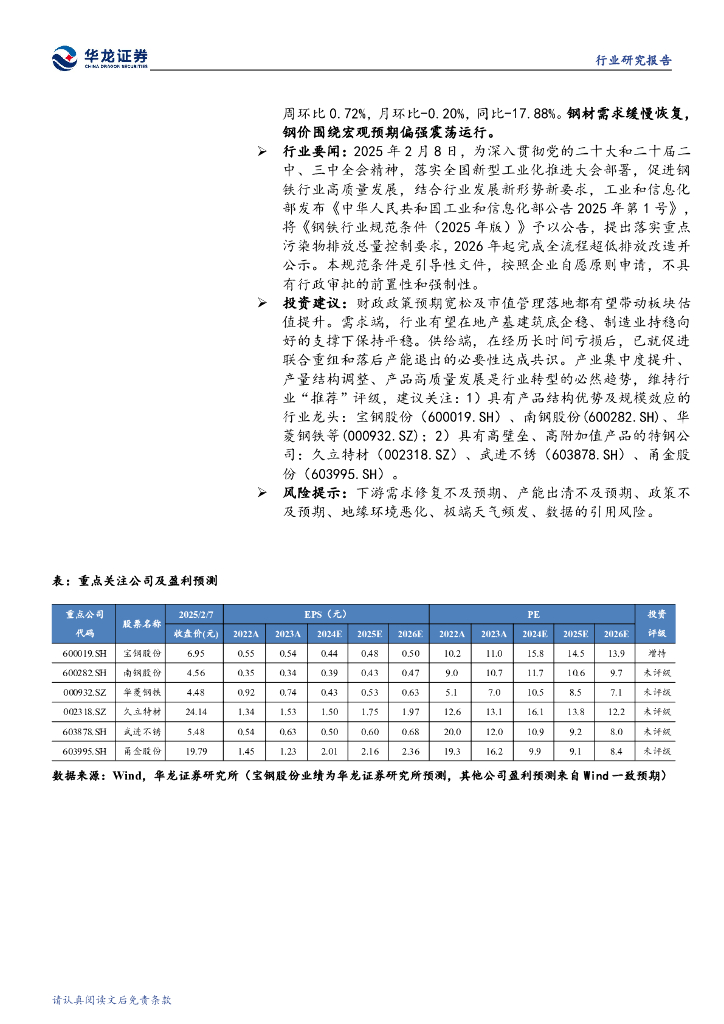 华龙证券:钢铁行业周报:社会库存相对低位,节后钢价震荡偏强.pdf