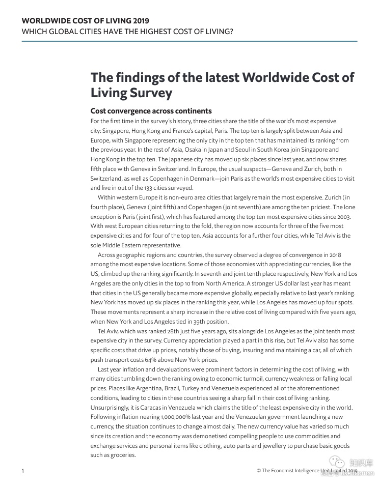 经济学人:2019全球生活成本调查报告(英文版).pdf