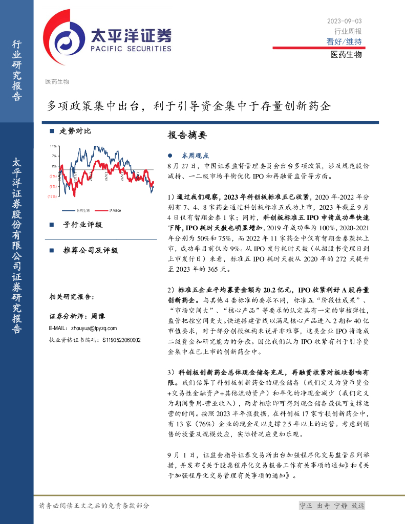太平洋证券:医药生物行业周报:多项政策集中出台,利于引导资金集中于存量创新药企.pdf