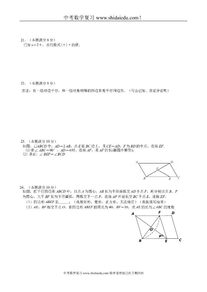 厦门市八年级(下)期中考数学试卷.doc