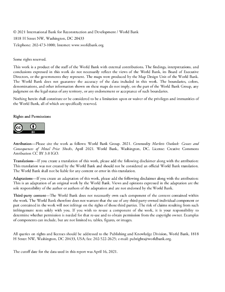 世界银行:2021年商品市场展望:金属价格冲击的原因和后果(英文版).pdf