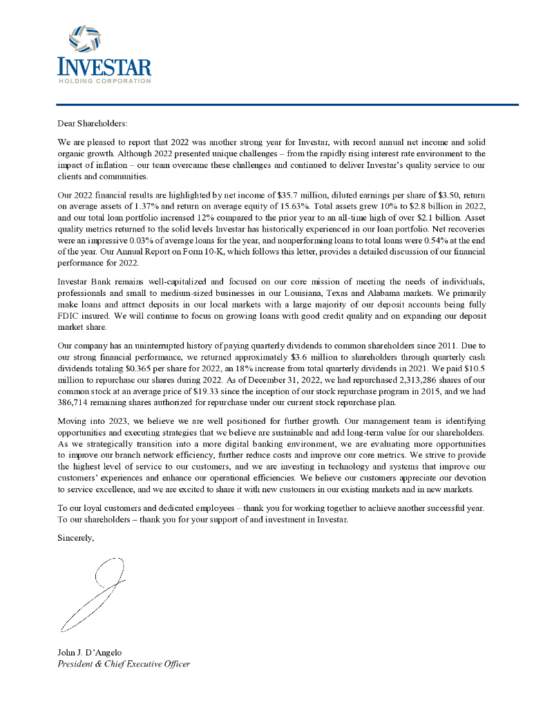 Investar Holding Corp(ISTR)2022财年年度报告(英文版).pdf