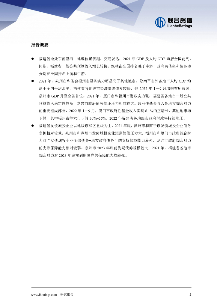 联合资信:地方政府与城投企业债务风险研究报告-福建篇(2022年).pdf