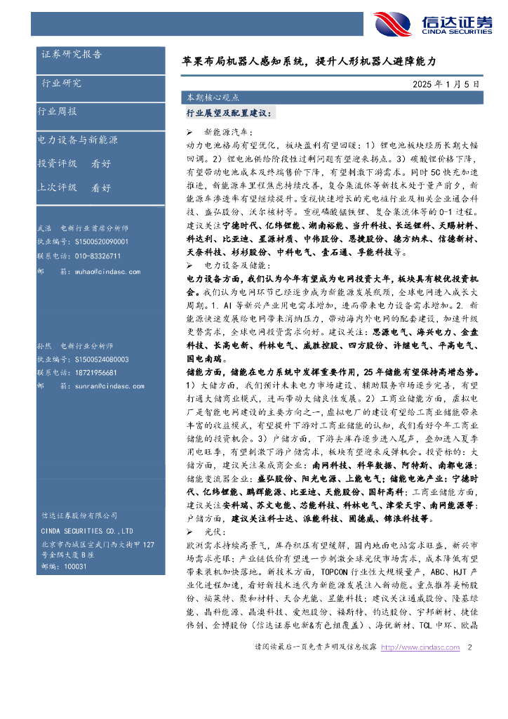 信达证券:电新周报:苹果布局机器人感知系统,提升人形机器人避障能力电力设备与新能源.pdf