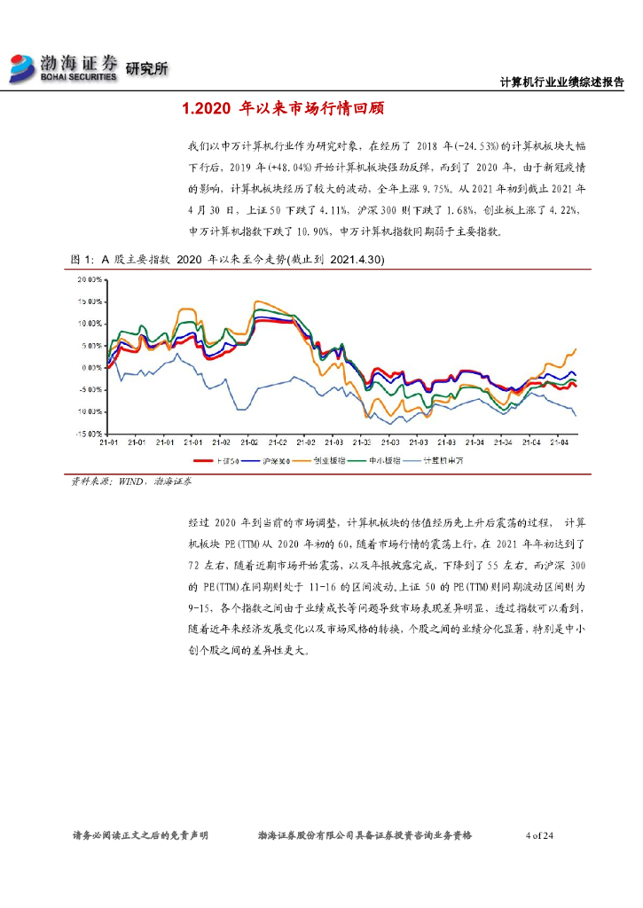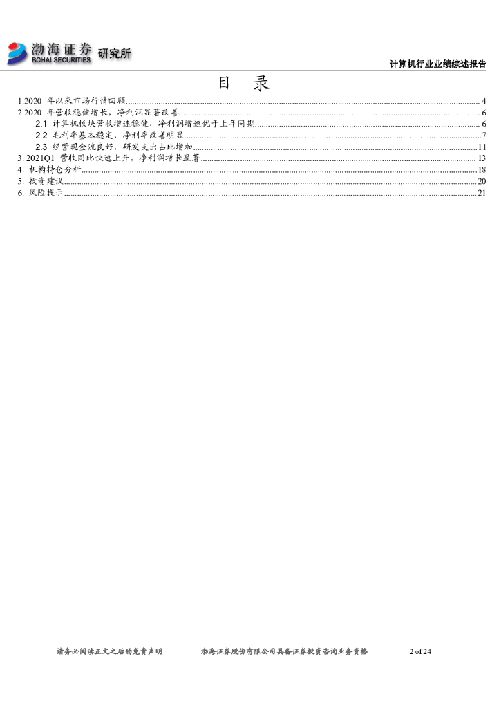 渤海证券:计算机行业2020年报及2021一季报综述:计算机行业净利润显著改善,关注绩优成长标的.pdf
