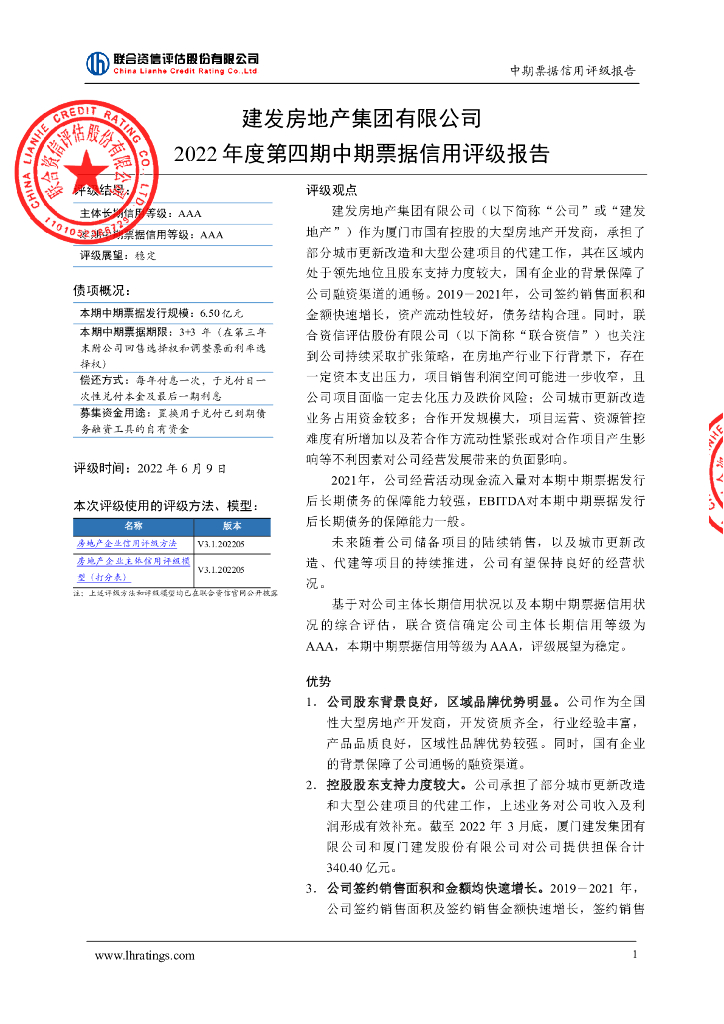 联合资信:建发房地产集团有限公司2022年度第四期中期票据信用评级报告.pdf