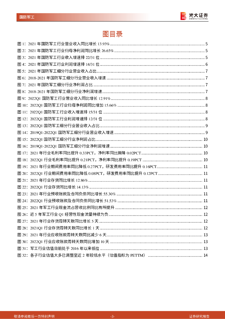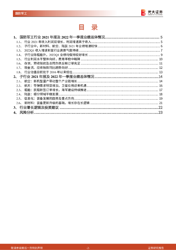 光大证券:军工行业2021年报及2022年一季报业绩综述:行业高景气持续,关注估值变化.pdf