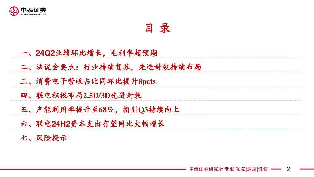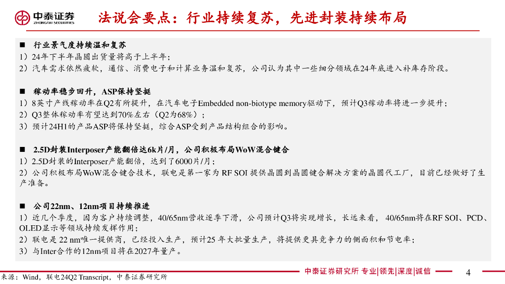 中泰证券:【中泰电子】AI全视角-科技大厂财报专题:联电24Q2点评—迎行业复苏,布局先进封装.pdf