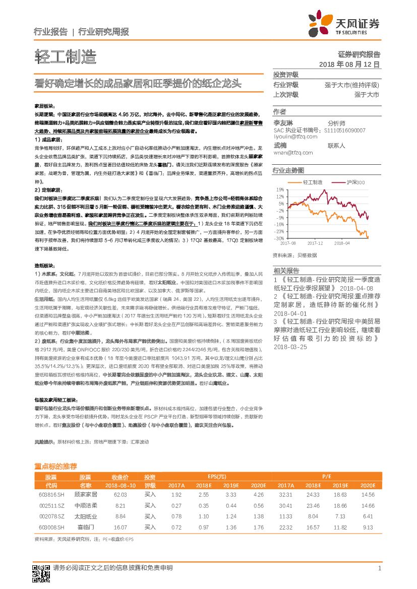 天风证券:轻工制造行业研究周报:看好确定增长的成品家居和旺季提价的纸企龙头.pdf