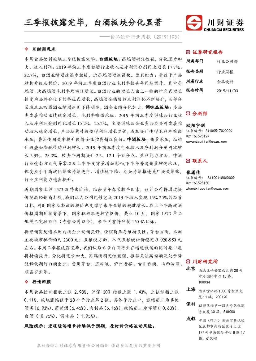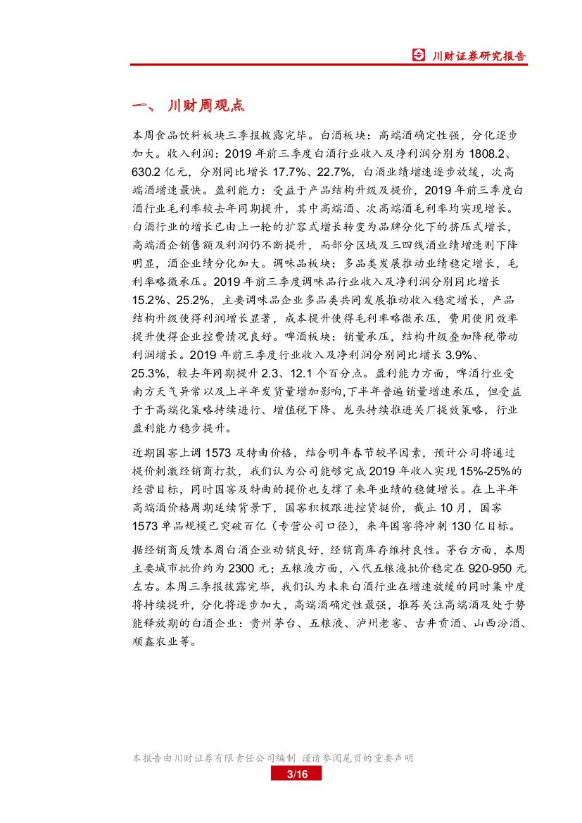 川财证券:食品饮料行业周报:三季报披露完毕,白酒板块分化显著.pdf